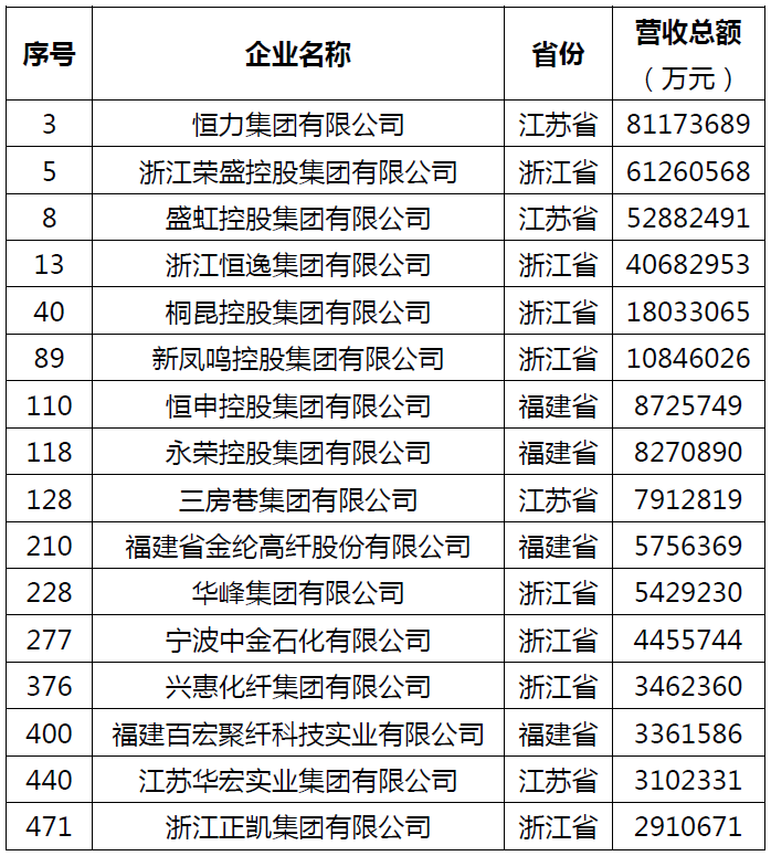 荣耀 | 16家化纤相关企业上榜2024中国民营企业500强名单