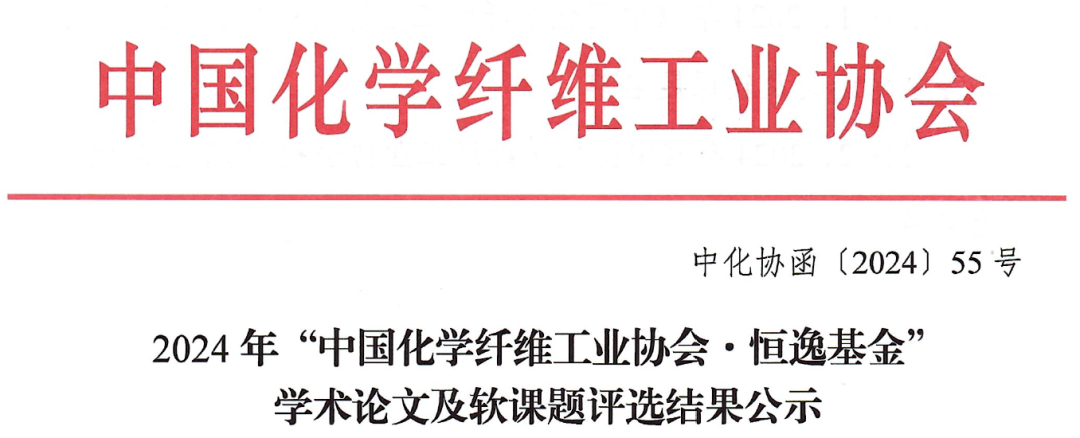 公示 | 2024年“中国化学纤维工业协会·恒逸基金”学术论文及软课题评选结果